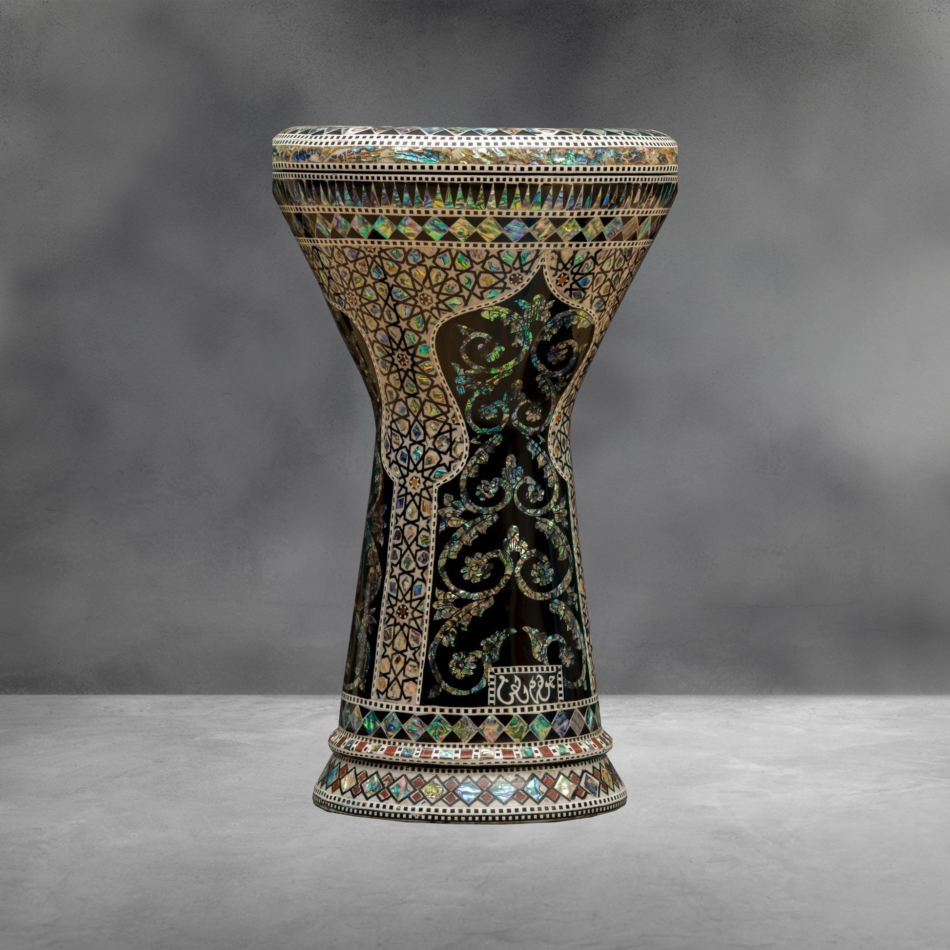 The Blue Pearl Flowers Temple Sombaty Darbuka is one of the drums from our stunning Blue Mother of Pearl collection