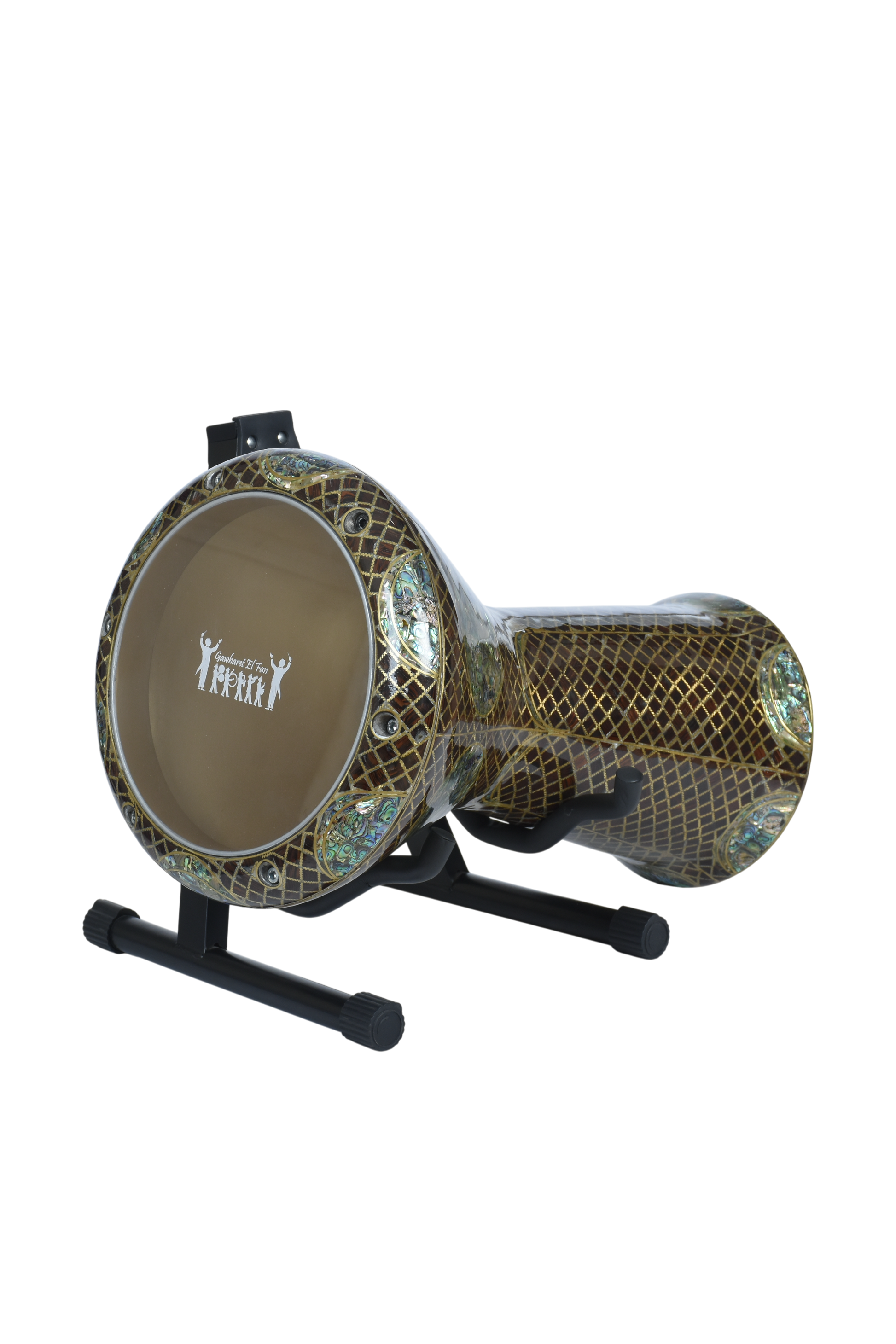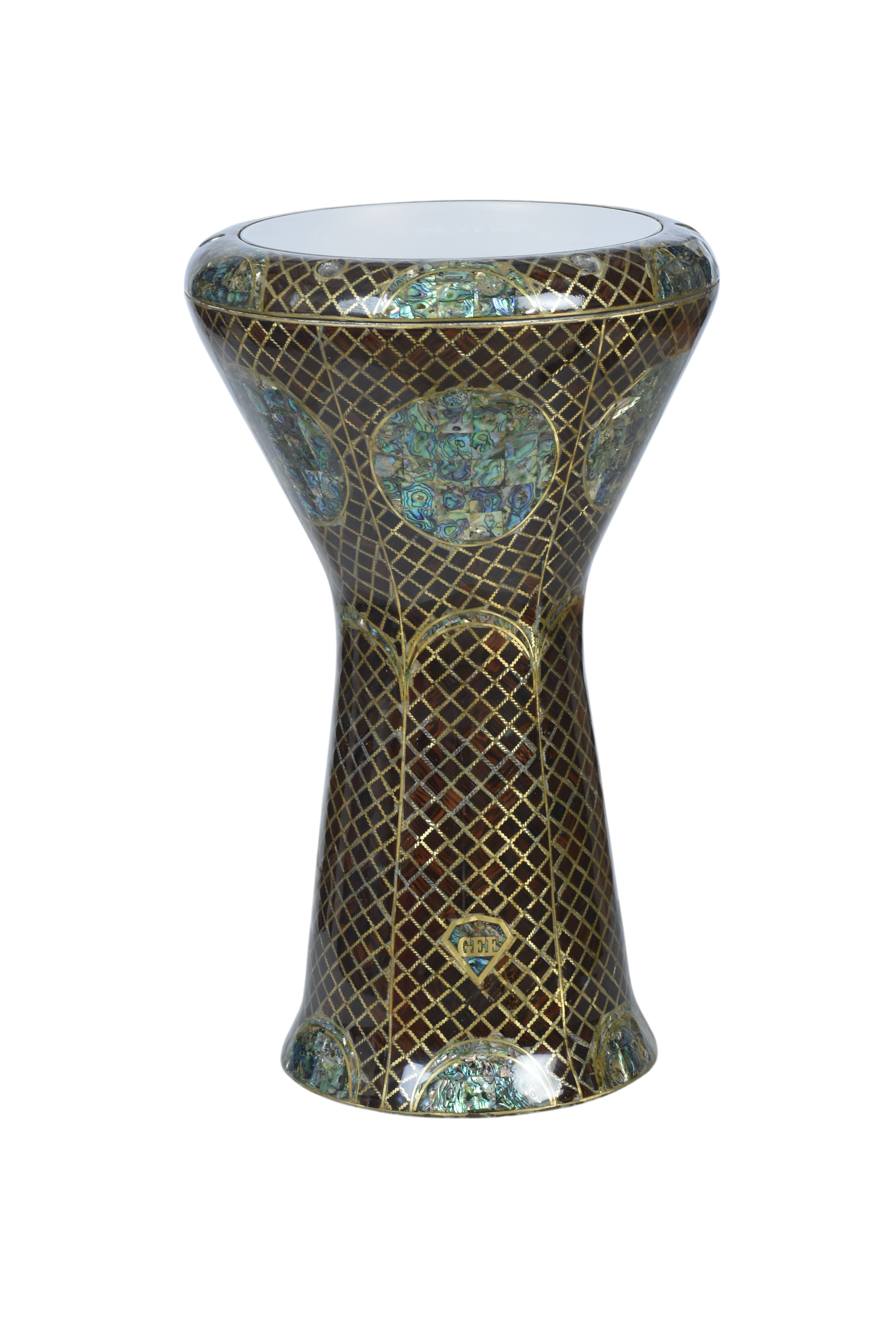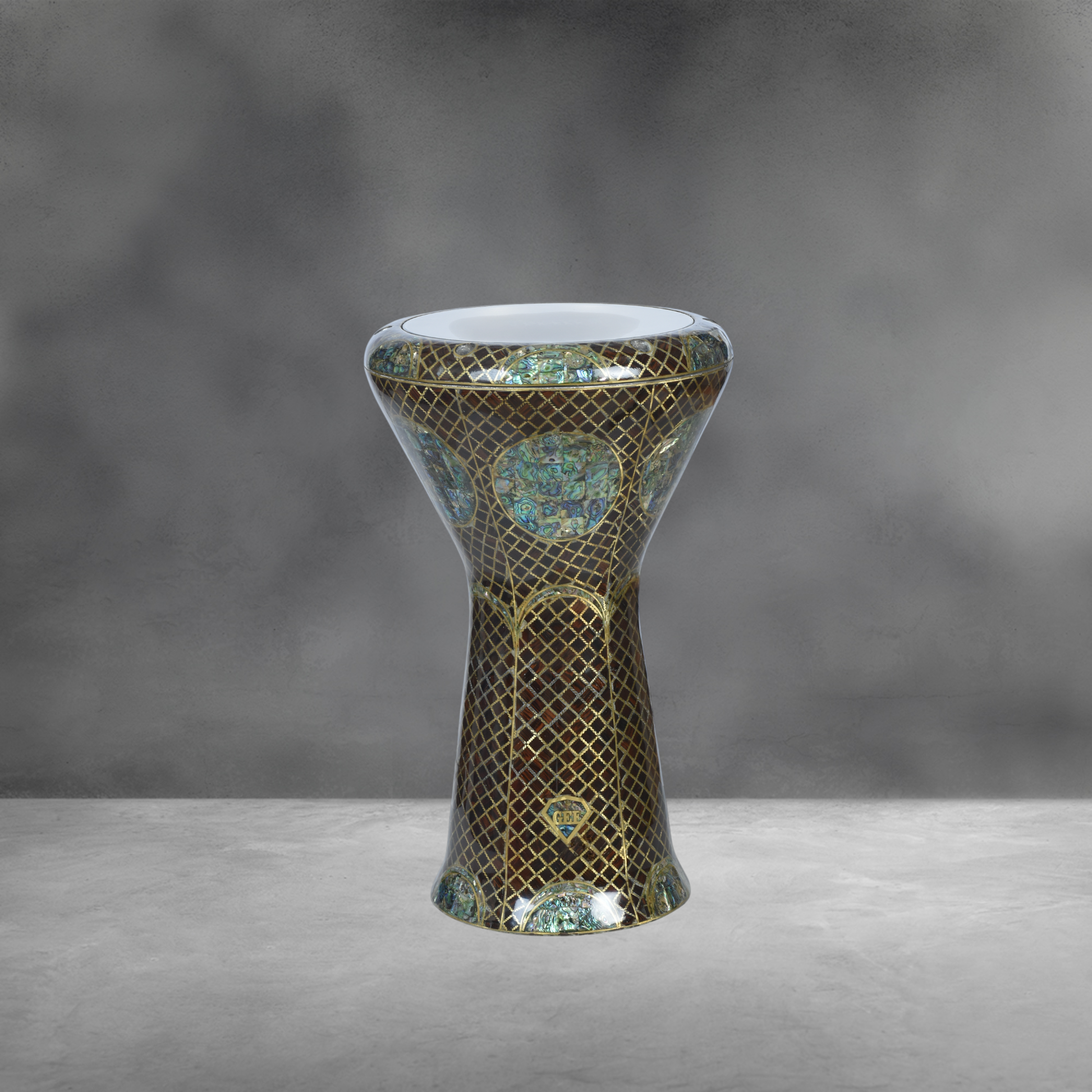 * NEW BODY STRUCTURE * “This is our ultimate high-end collection. It’s a completely customized edition. Starting with the body structure, we’ve designed and developed a brand-new body to meet your expectations and deliver the best sound from this drum. The finish features a groundbreaking technique, never before used in any of our darbukas. The gloss finish inside the drum is as smooth and glossy as the exterior, ensuring perfect sound quality. Our innovative designs incorporate only natural materials to adorn the drum, and this special collection is inlaid with real wood and genuine mother of pearl. You can acquire this exclusive collection through our website or our authorized resellers. It has a new and improved structure, designed by industry experts to enhance the playing experience. The top part of the darbuka is more curved, making it easier for players to position their fingers and hands for optimum performance. Play with precision and ease with the new drum structure