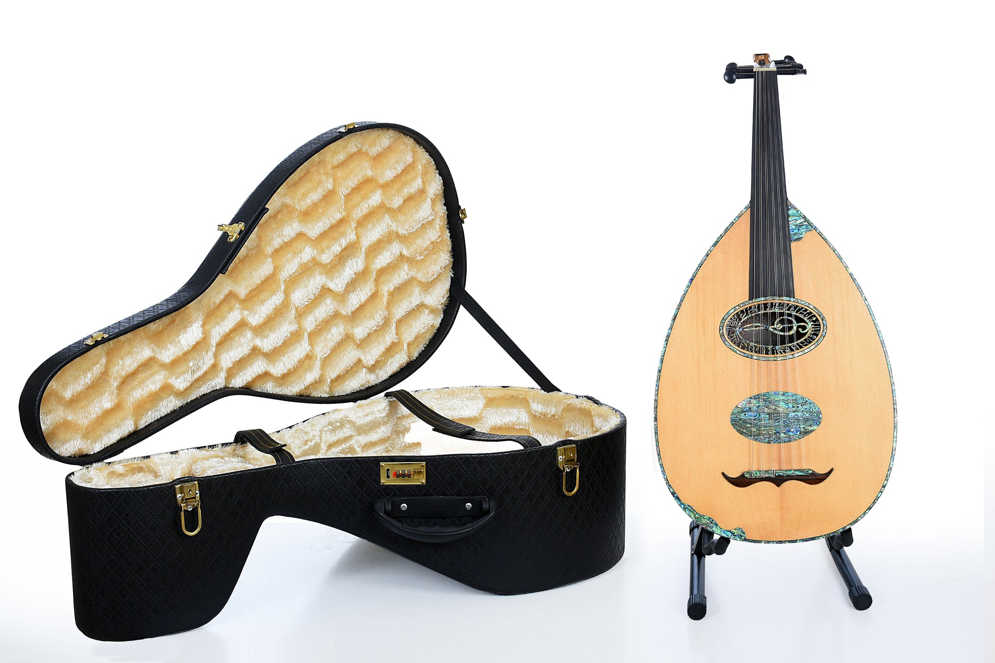 Made by our top craftsman, this high-end OUD combines Walnut and Wenge to create a Cedar face and ebony wood tuning keys. Its rich sound and superb craftsmanship make it ideal for professional musicians. Also includes a hardcase for storage and transportation.